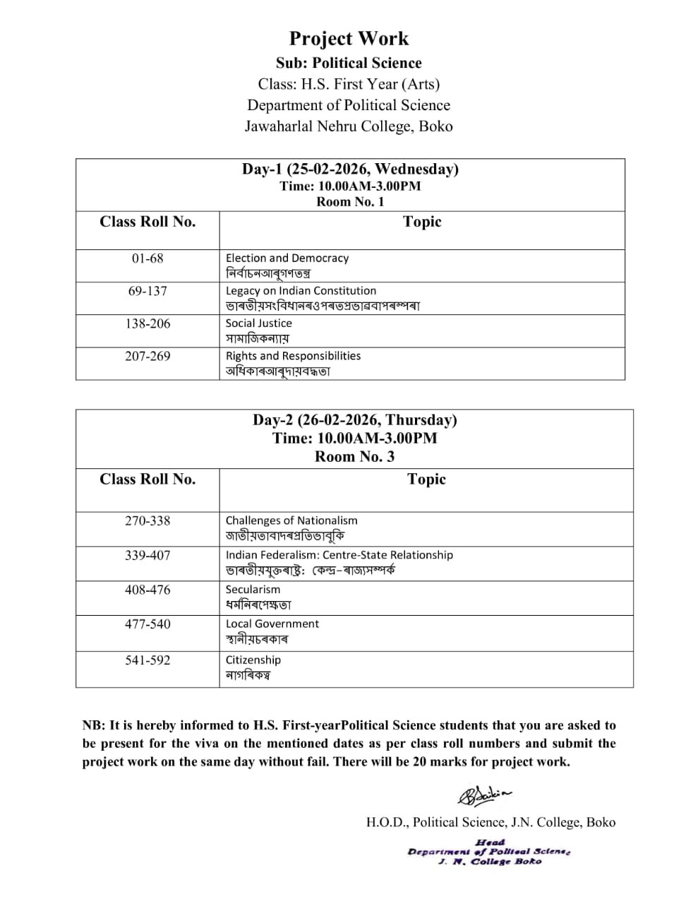 Therefore with deep faith and belief ourselves, we are un-daunting in the path of progress of our college with invaluable co-operation, association of various communities in Boko in our effort to achieve higher and nobler goals.