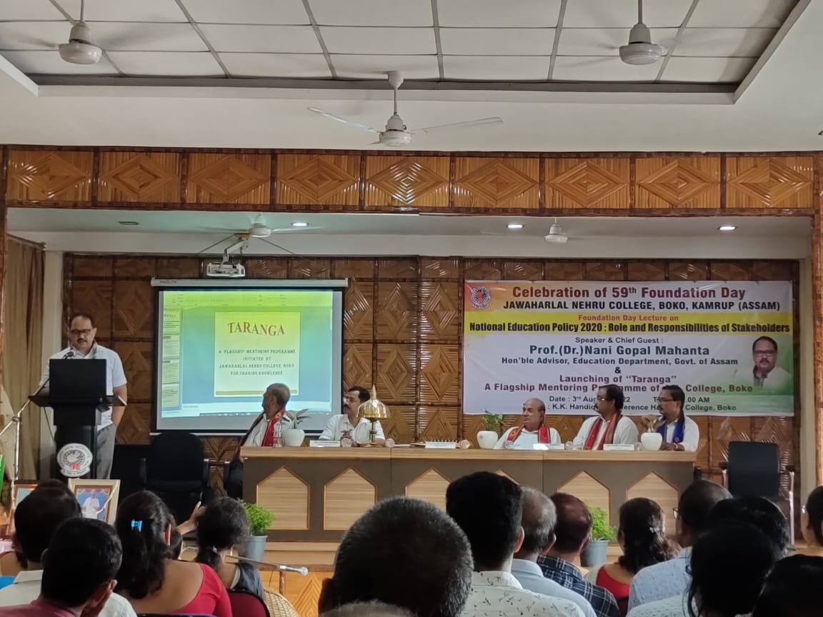 ‘Taranga’ launched with the noble mission of extension of support for promotion of quality education for widening of scope of growth of literacy in the area is a futuristic project in preparation for recurring students prepared for various challenges of higher education. This is a mentoring programme aim to support school education in the greater Boko region through mentorship offered by Jawaharlal Nehru College teaching fraternity not only to students but also the teacher community either in the education scenario or ancillary Areas. This is done so as to uplift education environment in Boko and future intake of quality student.